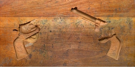 【課桌椅】看到這些廢舊的桌子,直接就想起當年上學的時期,上課我們也應該干過在桌子上刻東西或者亂寫亂畫的“勾當”,現(xiàn)在圖上的是藝術家 Ben Turnbull 在舊桌上的雕刻作品,當年若能弄出這樣的,會讓老師崩潰吧。